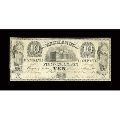<B>New Orleans, LA- Exchange & Banking Company</B></I> $10 Nov. 1, 1836 G6<BR> Any example of the $10 and higher denominations from this institution is scarce to rare. <B>Fine-Very Fine,</B></I> with an as made gutter fold. <BR><I>From The Collection of a Louisiana Gentleman.</B></I><BR><BR><b>Shipping:</b> Coins & Currency (<a target="_blank" href="http://www.heritageauctions.com/common/shipping.php">view shipping information</a>)