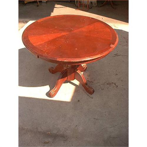 New Pedestal Table. In good condition. Measures 30" tall by 42" in diameter. Great small table for a kitchen. It is of a mahogany finish. Great for a small place or room.