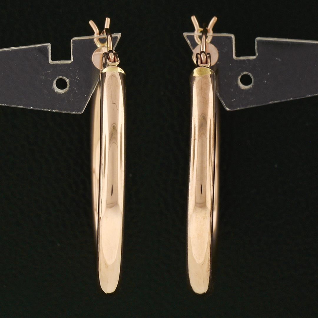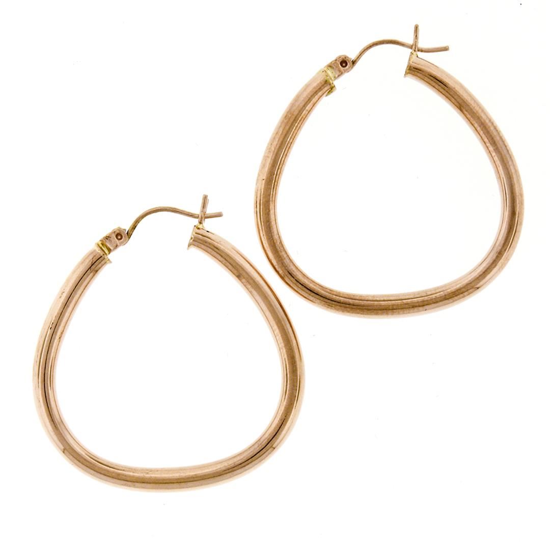 New Plain 14K Rose Gold Puffed High-Polished Rounded Triangle Hoop Snap Earrings