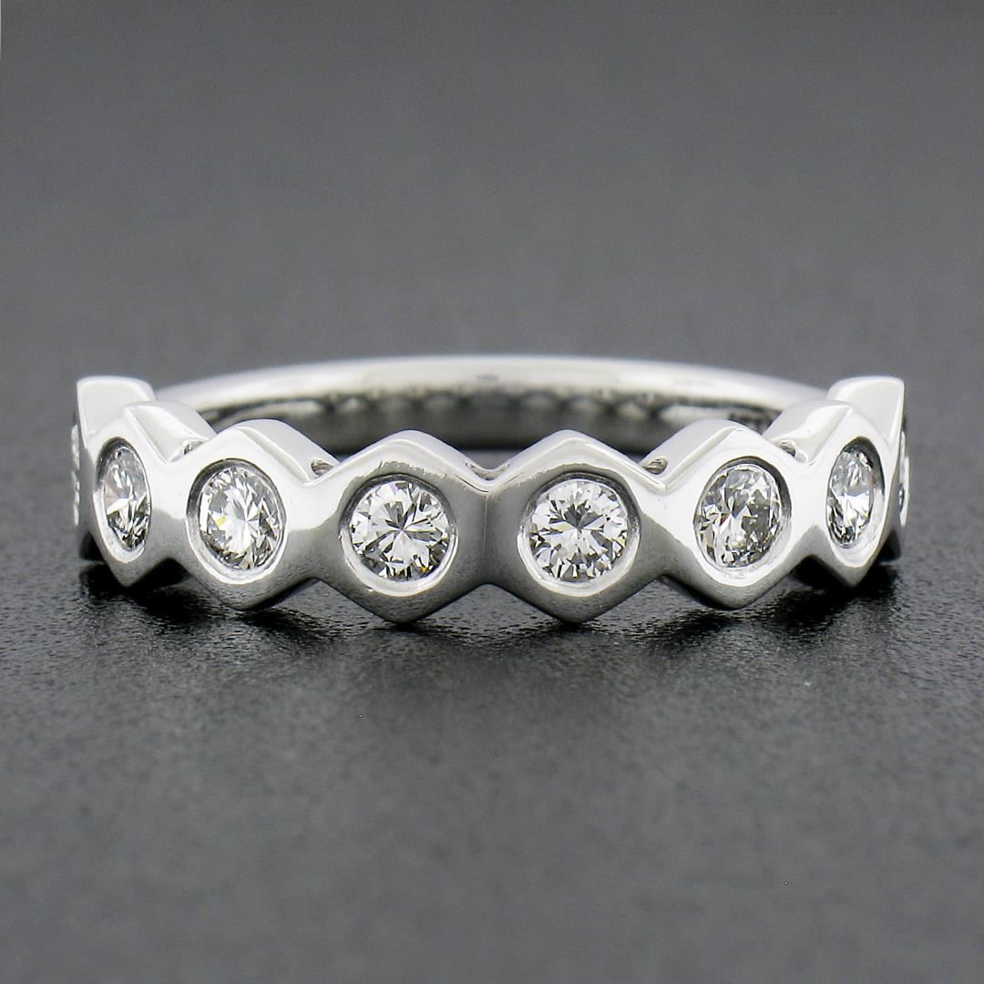 A new solid platinum band ring, with 8 round cut natural diamonds (G/H - VS1-SI2 ; 0.52ctw). The ring is size 6.5, weighs a total of 6.12 grams, and measures 4.7mm wide.