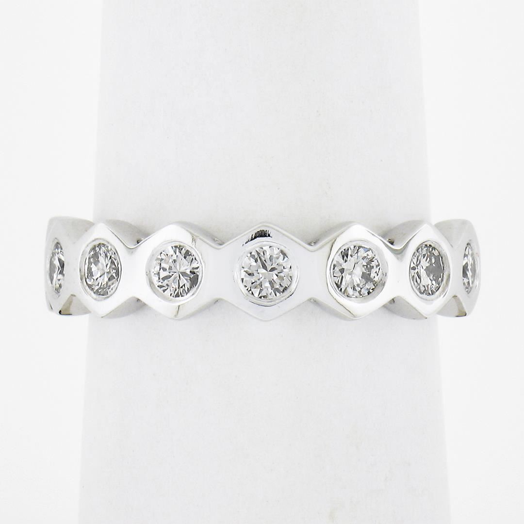 A new solid platinum band ring, with 8 round cut natural diamonds (G/H - VS1-SI2 ; 0.52ctw). The ring is size 6.5, weighs a total of 6.12 grams, and measures 4.7mm wide.