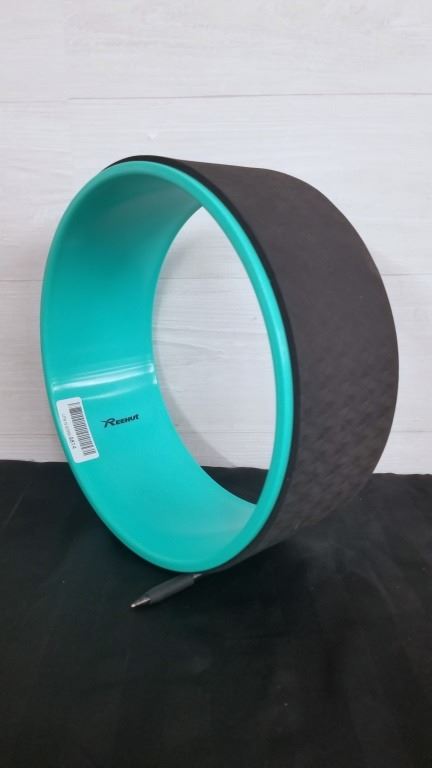 This teal/black lightweight (2.86lbs) and portable Yoga back roller measures 12.6" x 5†, and will support weight up to 330 lbs. Condition: New. One stock photo added.