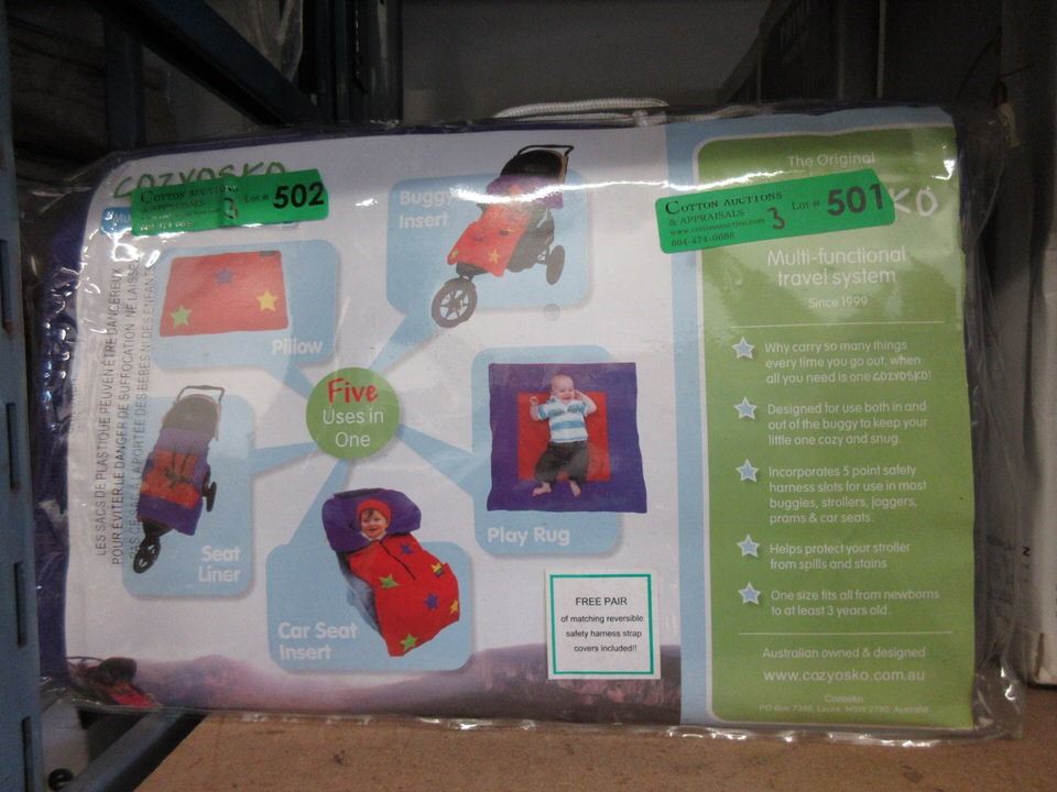Reversible bag is purple & green , baby blankets are purple
