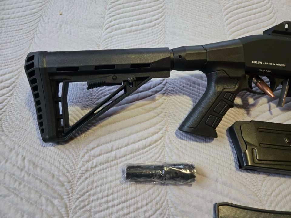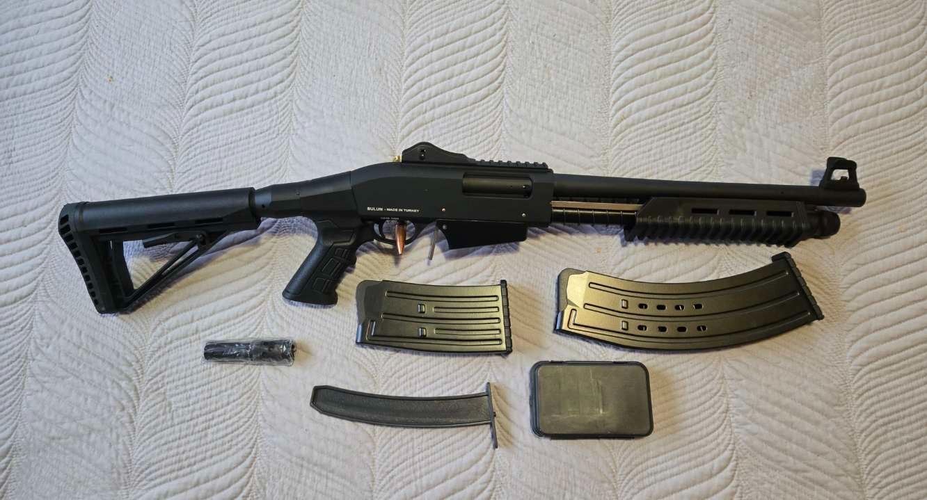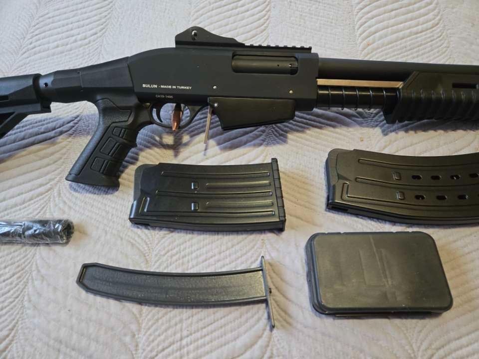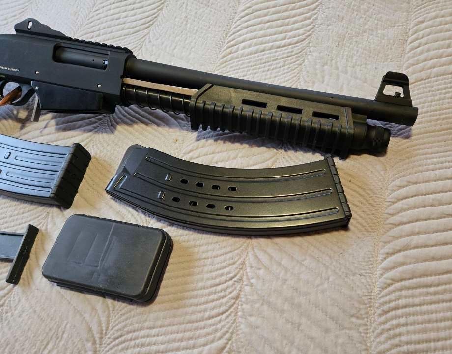 12gauge , comes with 2 mags, door breacher, choke set and hunting plug for mag. New in box