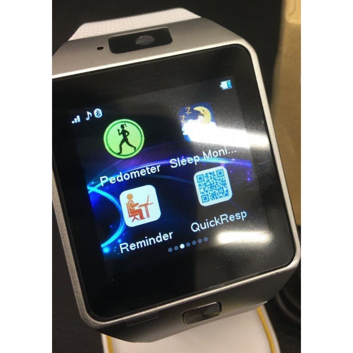 For Auction Is A New Smart Watch Touch Screen With Camera. Watch Has A White Band And Many Features. Read Below. From the manufacturers website: Supports SIM card, let you make and receive phone calls directly on your wrist Call Function: Dial, Hands-Free, Phone Records, Phone Book, Bluetooth phone Remind function: SYNC calls and app notification SMS from the paired cell phone, Ring and vibration reminding personal health manager keeps track of your daily activities, records your sleep patterns and reminds you of long-time sitting Built-in 1.3MP camera, also support remote shutter control over cellphone camera, watch take pictures, memory storage, picture shows customizable UI themes for more fun entertainment: MP3, MP4, AVI, Bluetooth music playing Clock display, 3 ways show display clock, free switch, Click to switch Ultrasonic sound cavity with closed aluminum film for high-quality sounds Bluetooth transfer information: Twitter, Facebook, WhatsApp, WeChat Timely information etc. Others: Alarm clock, calendar, stopwatch, Calculators, Compass etc. View Photos For Further Details.