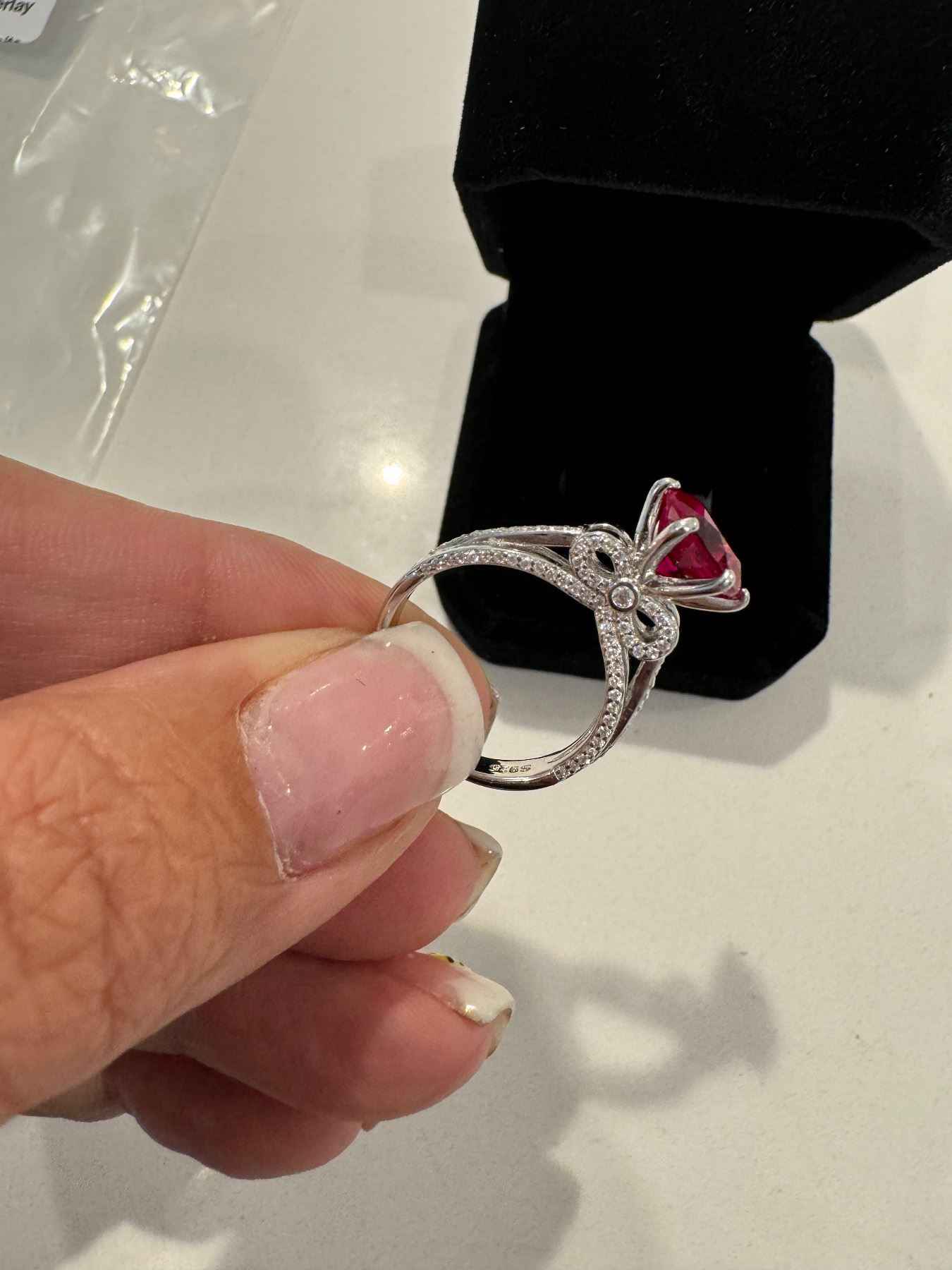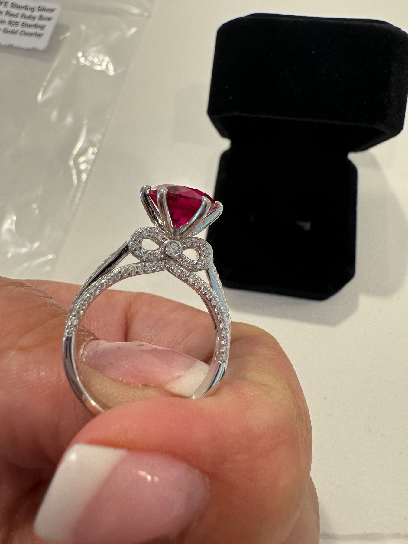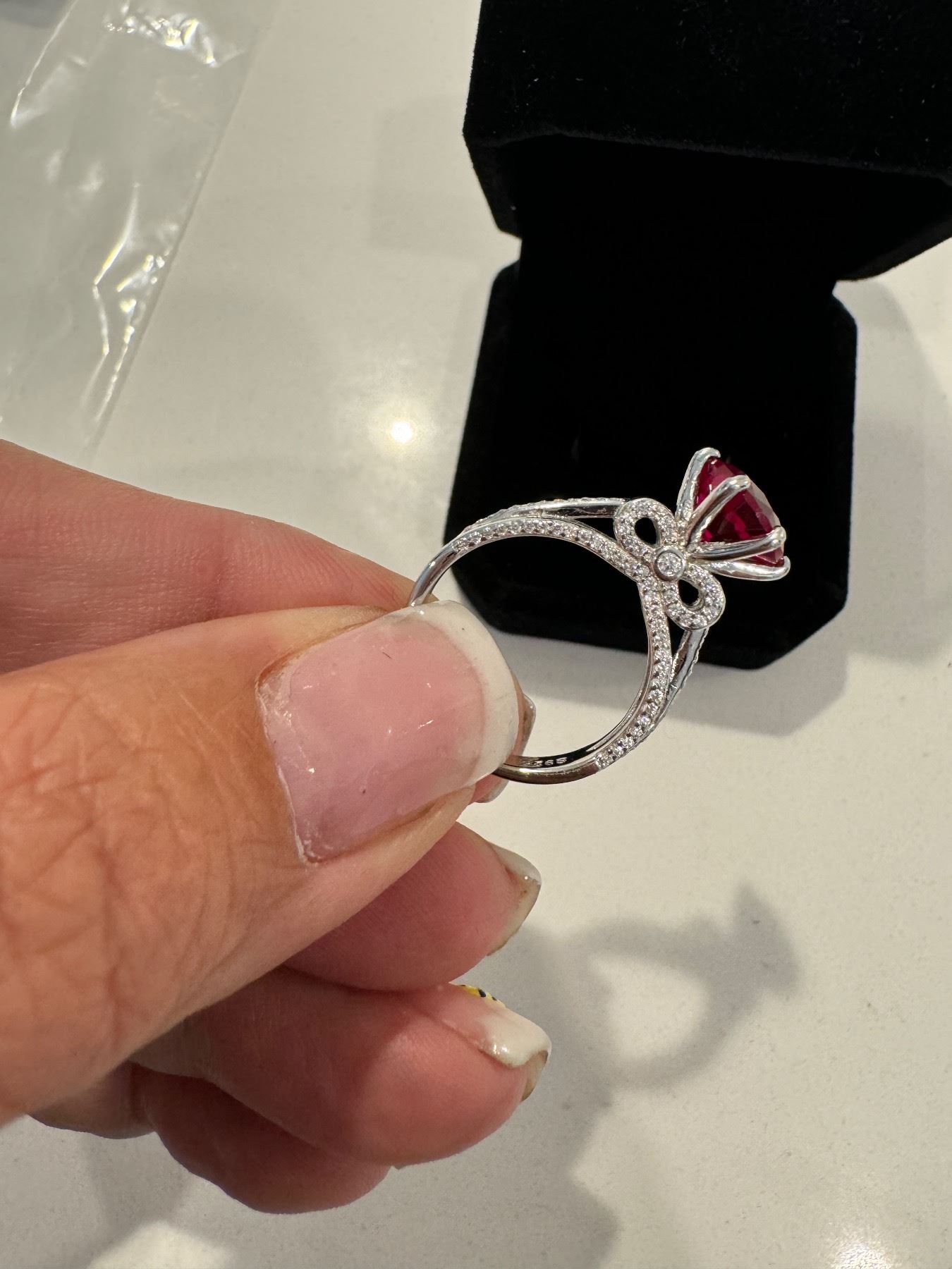 New Smart life Sterling silver 3 CT lab grown red, ruby bow ring mounted in 925 sterling silver with white gold overlay