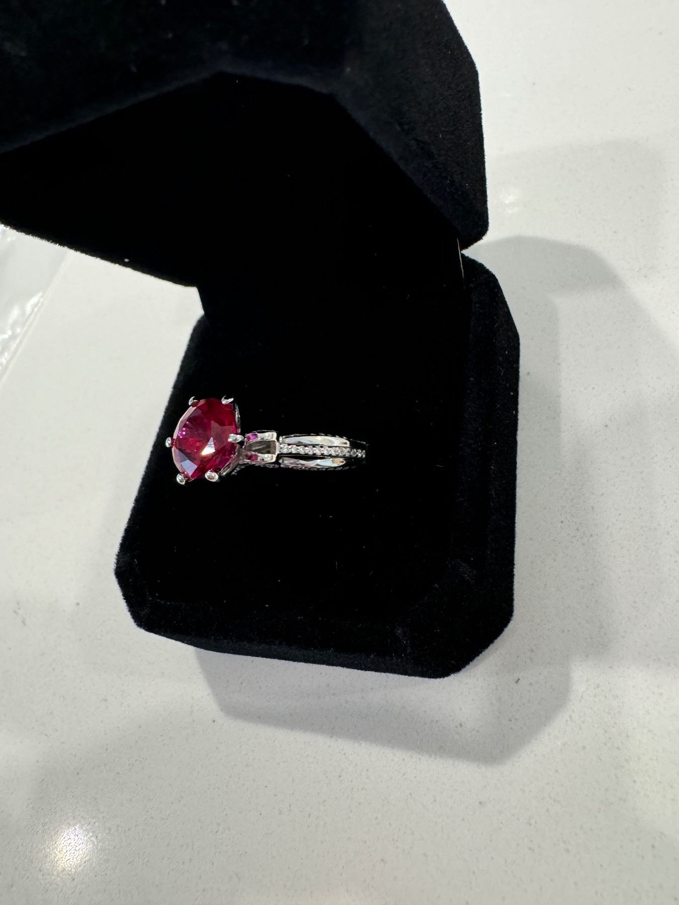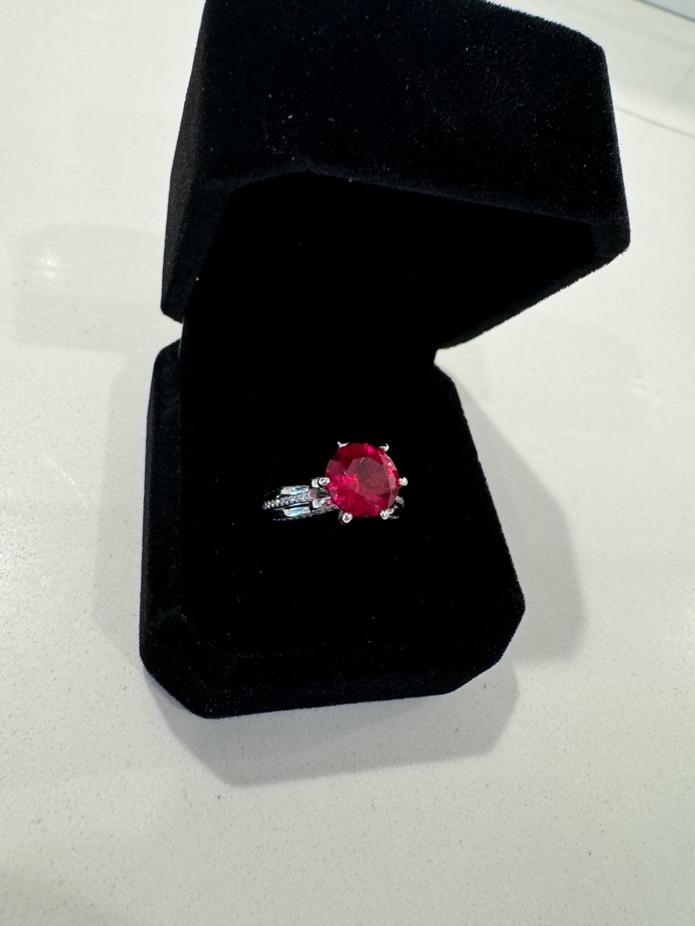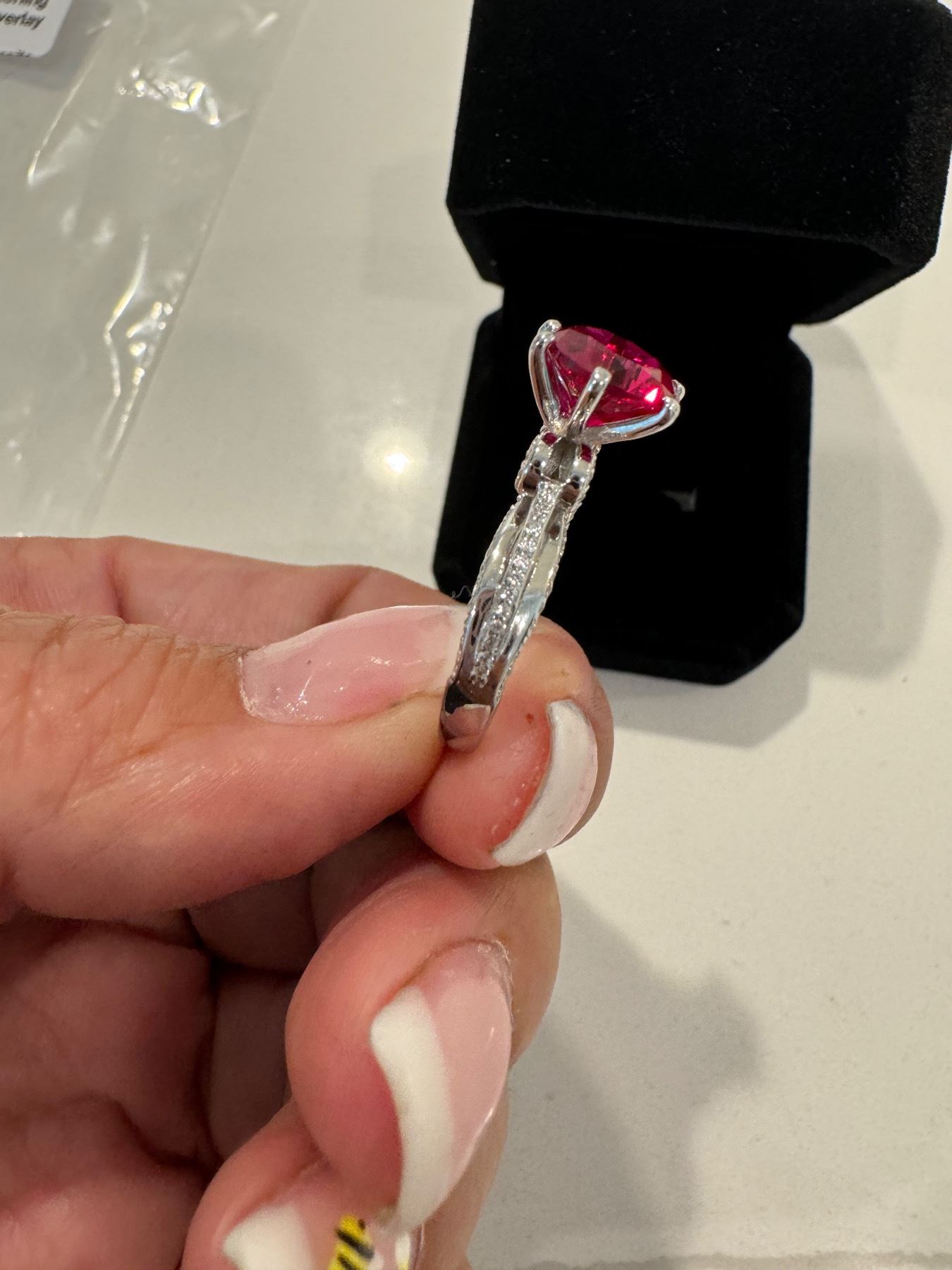 New Smart life Sterling silver 3 CT lab grown red, ruby bow ring mounted in 925 sterling silver with white gold overlay