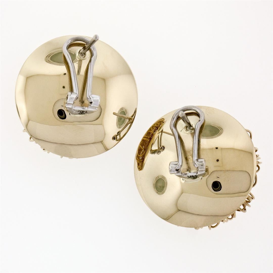A new solid 14k yellow gold large round tangled wire button earrings, The earrings measure approximately 23.0mm in diameter and weigh a total of 10.19 grams.