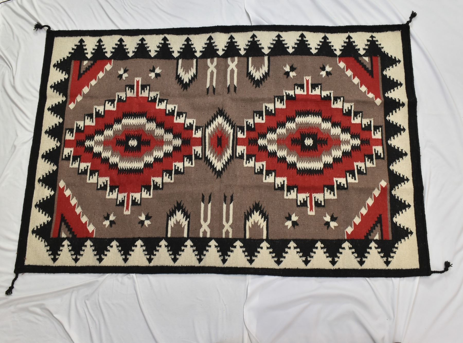 New Southwestern Wool Trading Post Textile Rug, measures 48'' x 72'', four cornered tassels present, gorgeous colors