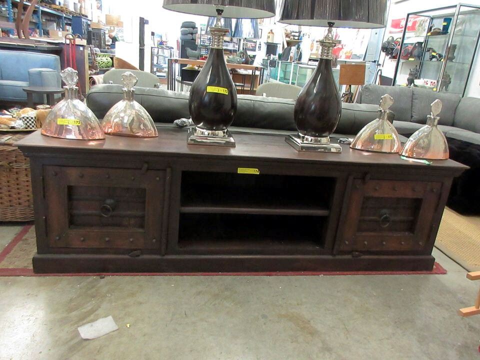 With doors & shelves. 17" x 83" long x 25" tall