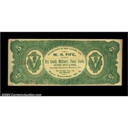 New Tacoma, W.T.- W.H. Fife $5 Advertising NoteA fantastic Advertising Note which is the only such piece we have ever seen or handled from Washington Territory. It was issued some time between 1874, when Mr. Fife established his dry goods business, and 1887, when New Tacoma became part of the city of Tacoma. The only piece we have seen in recent years in any way comparable to this note is the Wyoming Territory Ad Note we sold last year in similar grade, which realized $3162.50 on a pre-sale estimate of $1500-2500. About Uncirculated, rare and desirable enough to easily reach or exceed... Important notice: We expect to be auctioning lots at the rate of 200-250 per hour. Sometimes eBay Premier live bid software cannot keep up with that pace, so we strongly recommend that you place a realistic proxy bid now as insurance to avoid disappointment. Also please note that all Heritage/CAA lots purchased through eBay Premier carry a 20% Buyer's Premium. Please make sure you read the Terms and Conditions.