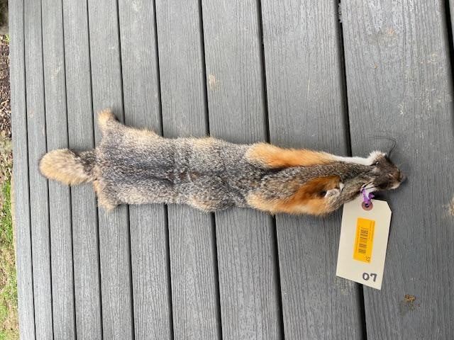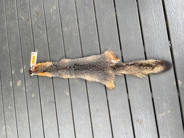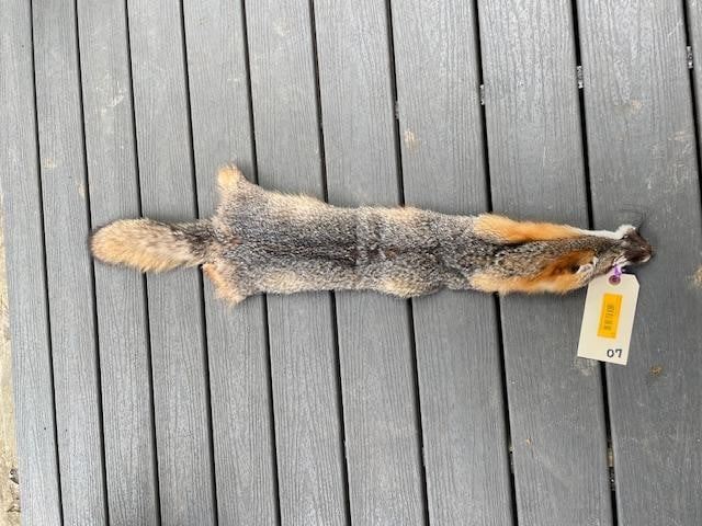 *New* Tanned Large GREY FOX Hide-Fur Skin. It measures 43" Long. This would be beautiful log cabin decoration. DECORATIVE TAXIDERMY