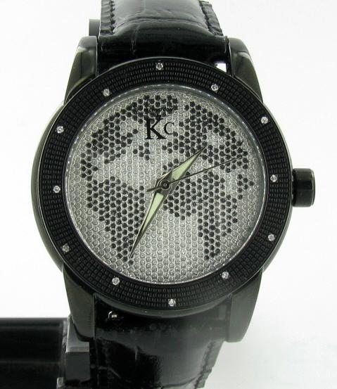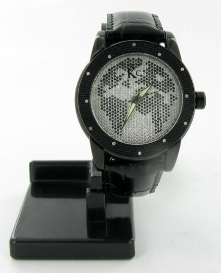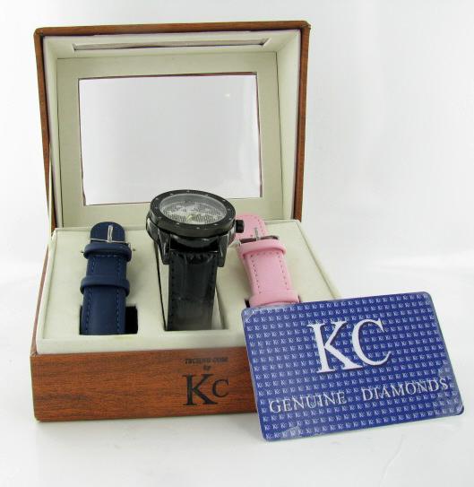 Brand Techno Com ladies's stylish sport style watch with diamonds mounted in bezel; excellent new condition with black stainless case and 3 leather bands; box and papers; retail $2295