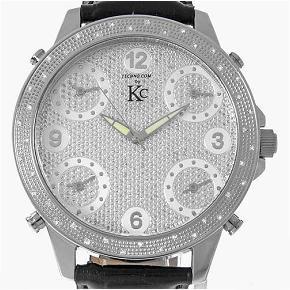 Brand Techno Com men's stylish sport style watch with diamonds mounted in bezel; excellent new condition with stainless case, multi-time zone dials and leather band; box and papers; retail $3,595