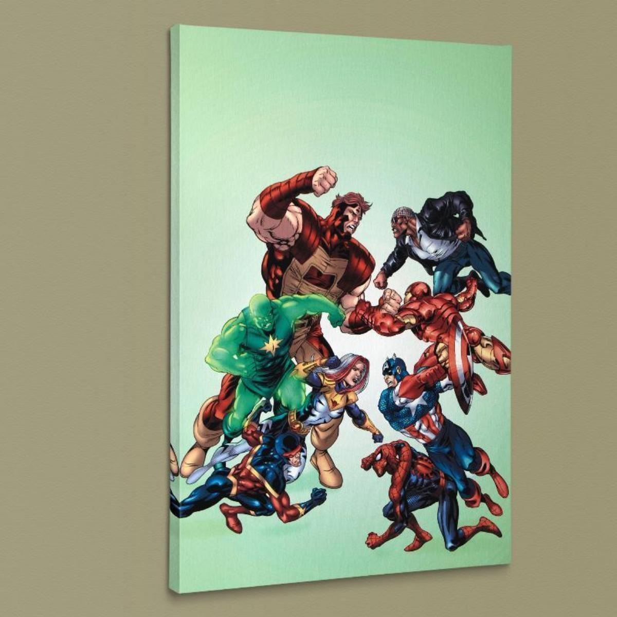 A piece of comic book history, this limited edition, from original art by Tom Grummett, depicts an action packed scene featuring the Avengers. While working for Marvel, Tom Grummett was the penciller on the Thunderbolts series and also co-created the X-Men Forever series. "New Thunderbolts #3" is a limited edition numbered giclee on canvas by Tom Grummett presented by Marvel Comics. This piece comes gallery wrapped. Includes Certificate of Authenticity! Measure approx. 18" x 27" (image).