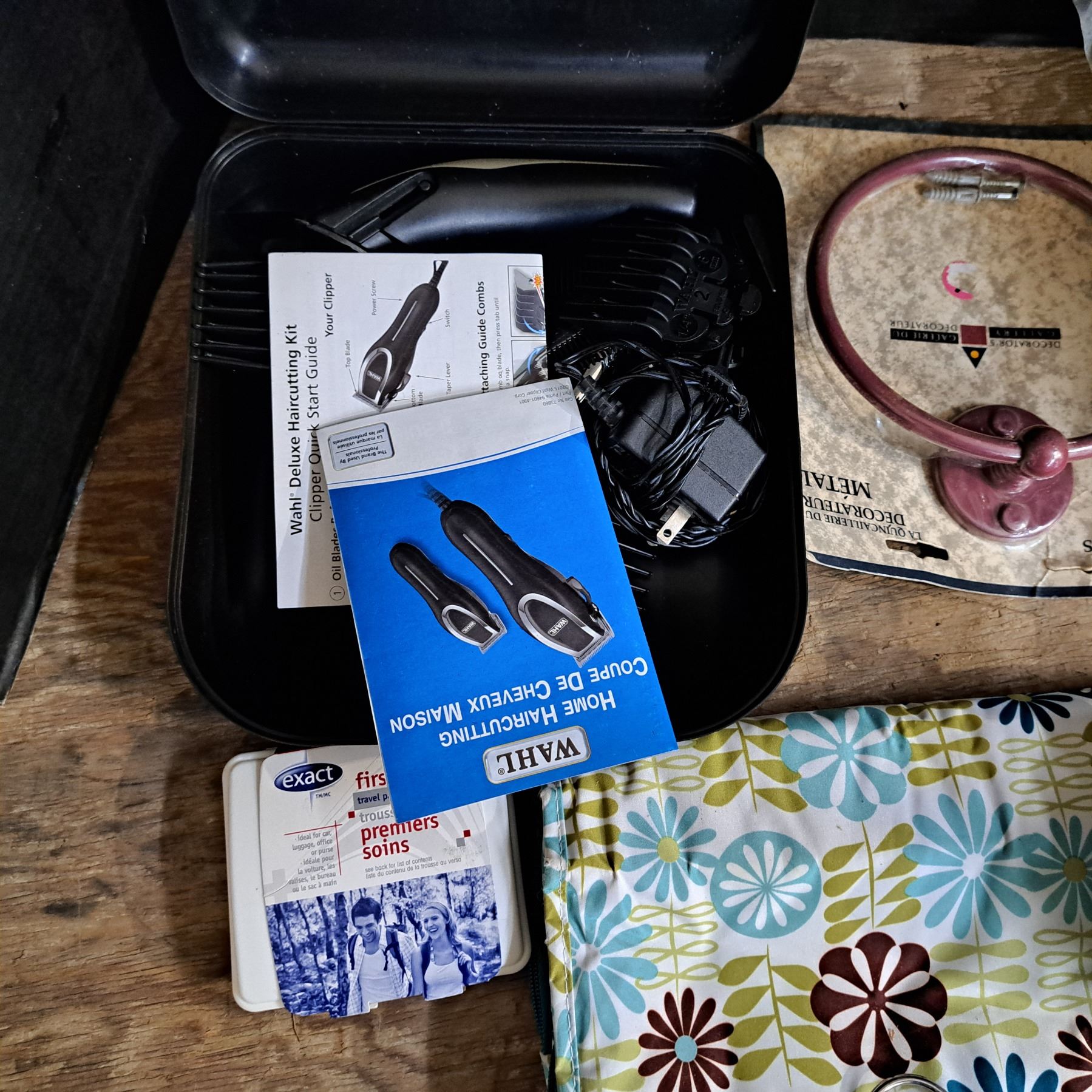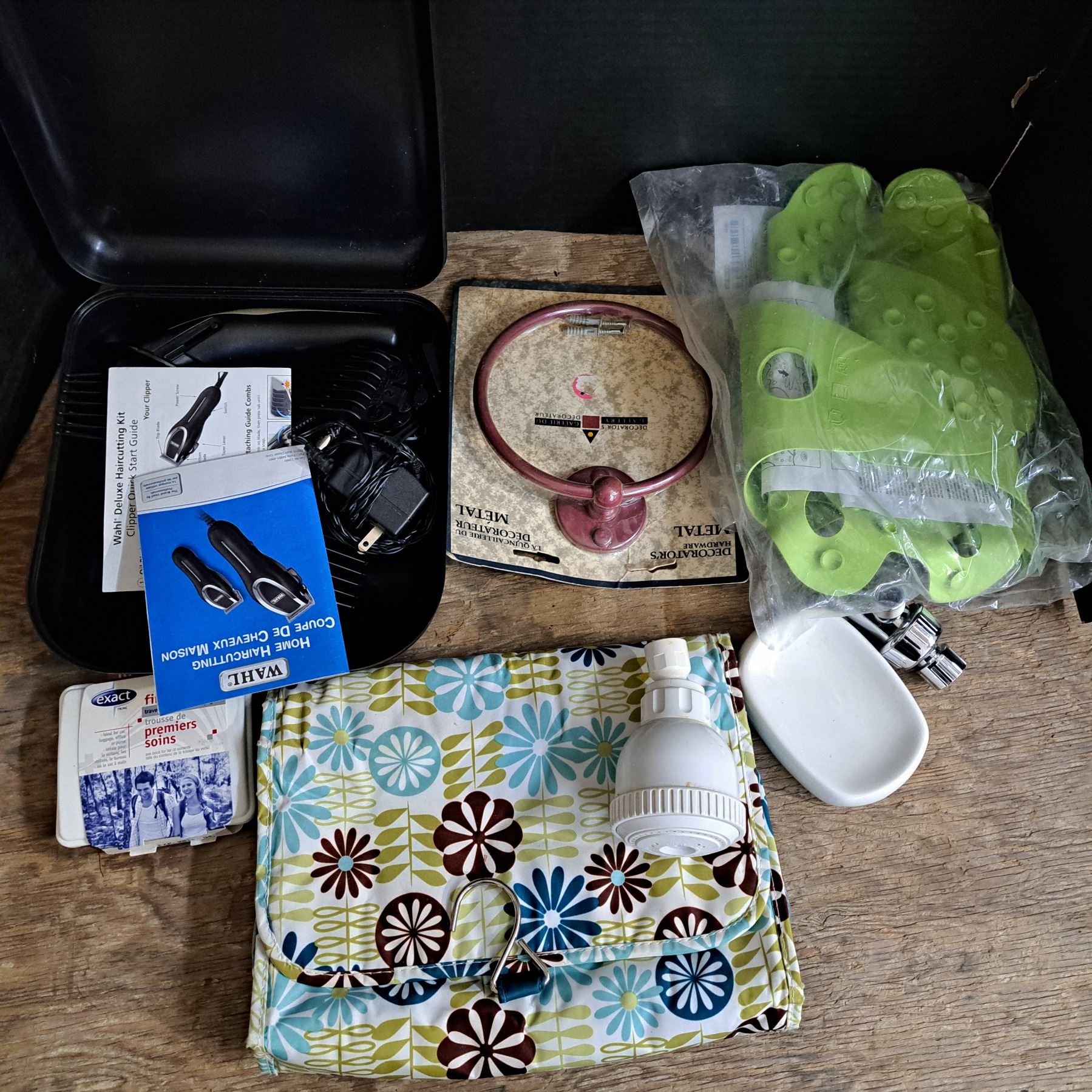 New - Travel Toiletry Organizer, Alligator Anti Slip Tub Mat, First Aid Kit, Towel Hanger, Shower Head and "Wahl" Hair Clipper Set