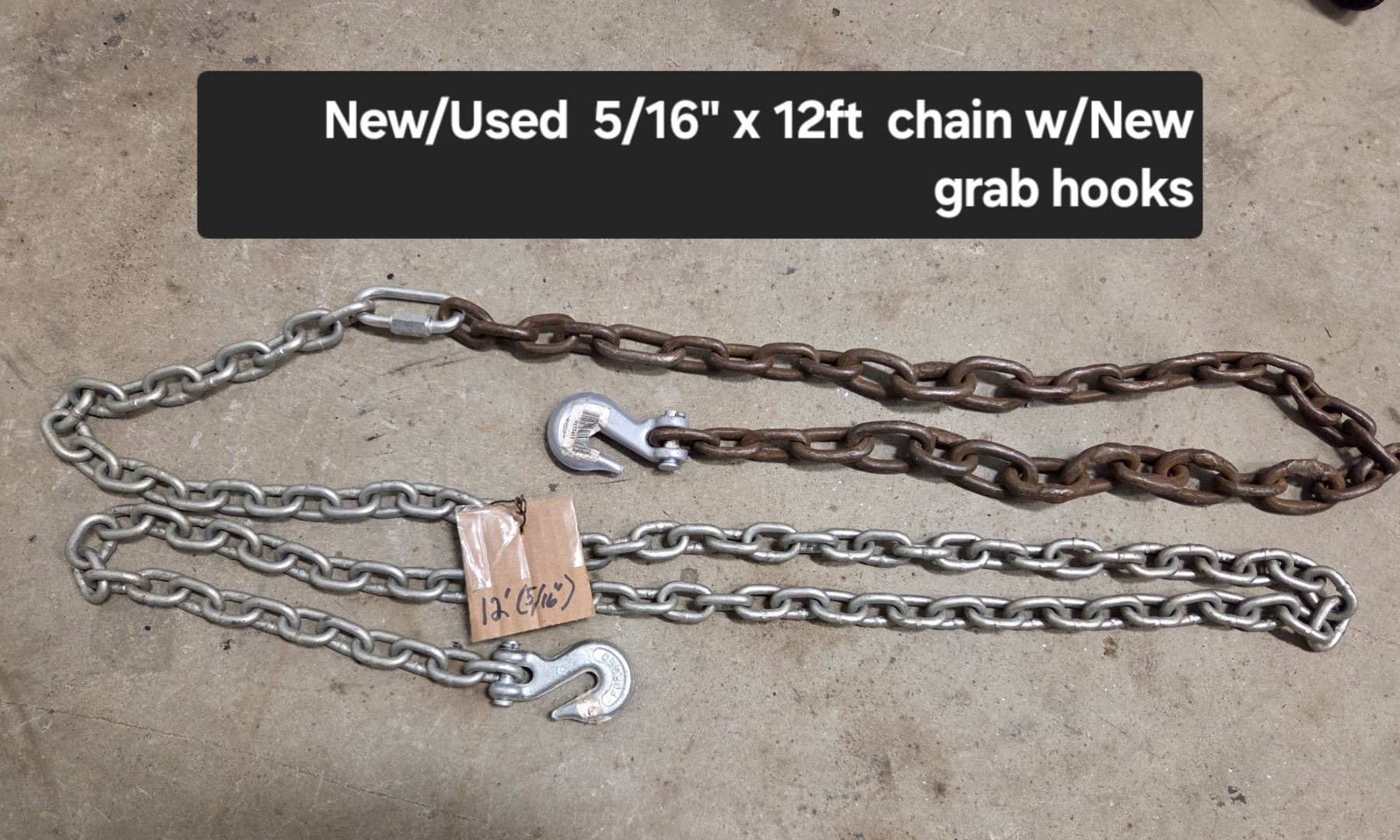 New/Used 5/16"x12ft Chain w/ New Grab Hooks
