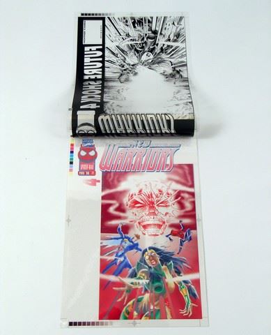 From Marvel Comics "New Warriors #71 (May '96), this is the original 4-Color Marvel Comic proofs for the cover re-printing. It is usually destroyed shortly after printing. Vibrant and beautiful, it features three multi-layered acetates. Very rare and very desirable production art. One-of-a-kind. Approx 7.5x12.5".