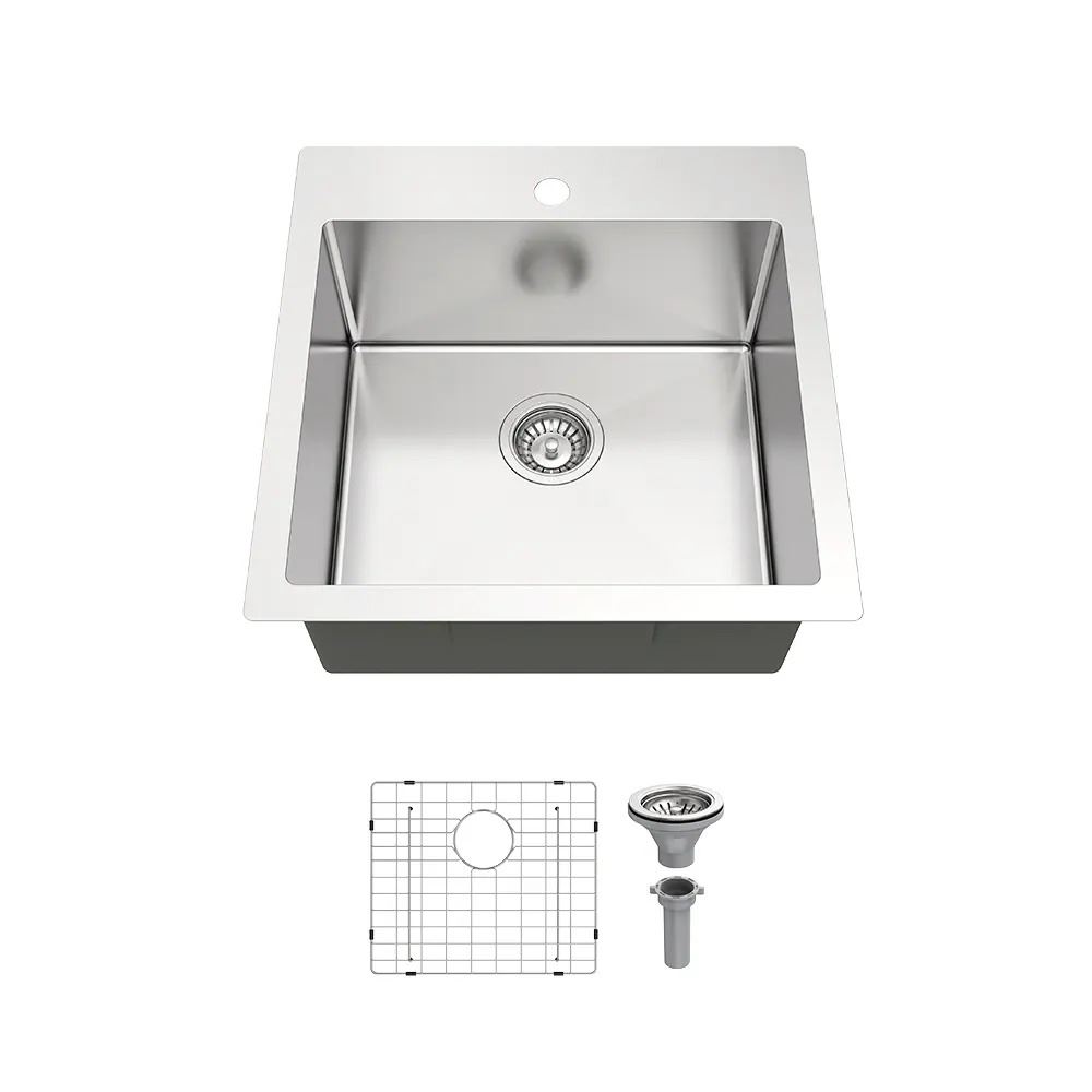New Wessan 8-Deep drop-in 20.5in x 20in stainless steel single bowl kitchen sink with strainer and hardware (new in box)