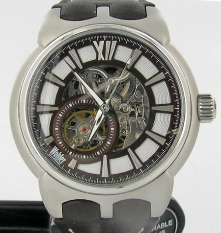 Brand New Wohler men's stylish sport skeleton style watch in excellent new condition with seconds dial; stainless case and leather band; box and papers; retail $1895