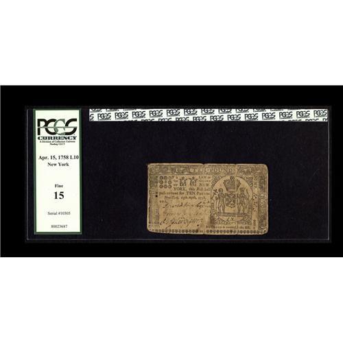 New York April 15, 1758 L10 PCGS Fine 15. Unrestored an New York April 15, 1758 L10 PCGS Fine 15.