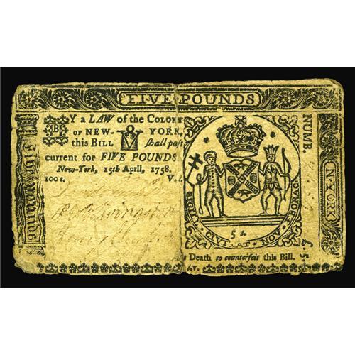 New York April 15, 1758 L5 Very Fine. This is only the New York April 15, 1758 L5 Very Fine.