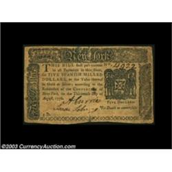 <TABLE cellSpacing=0 cellPadding=0 width="100%" bgColor=#000000 border=0><TBODY> <TR><TD width="100%"><TABLE cellSpacing=1 cellPadding=3 width="100%" border=0><TBODY><TR><TD width="100%" bgColor=#79735c><FONT face=arial color=#ffffff size=3><B>Description</B> </FONT></TD></TR><TR><TD width="100%" bgColor=#ffffff><FONT face=arial size=2><B>New York August 13, 1776 $5 Very Fine.</B></I> A handsome, well signed example from a Colony where problem-free circulated notes are quite hard to come by. (225-up ) </FONT></TD></TR></TBODY></TABLE></TD></TR></TBODY></TABLE><BR><TABLE cellSpacing=0 cellPadding=0 width="100%" bgColor=#000000 border=0><TBODY><TR> Important notice: Heritage usually auctions material at the rate of 200-250 lots per hour. On some occasions eBay Live bid software or the Internet may not be able to keep up with the pace of the auction. We recommend placing a realistic absentee bid now as insurance to avoid disappointment. Occasionally the auctioneer may eliminate or reject an eBay Live bid, and the auctioneer may also reopen a lot after the close of the eBay live bidding (usually because we missed an audience bid), and may reject your bid even if it shows you as the winning bidder. By bidding via eBay Live, you agree that Heritage may award the lot to another bidder at its sole discretion under the circumstances described above or any other reasonable circumstances. Also please note that all Heritage lots purchased through eBay Live carry a 20% Buyer's Premium. Please make sure you read the Terms and Conditions before you bid.</TR></TBODY></TABLE>