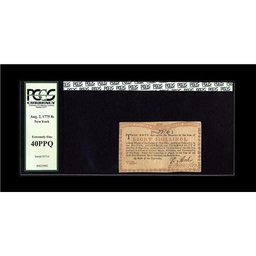 New York August 2, 1775 (Water Works) 8s PCGS Extremely New York August 2, 1775 (Water Works) 8s PCG