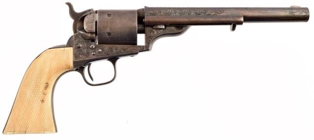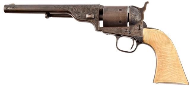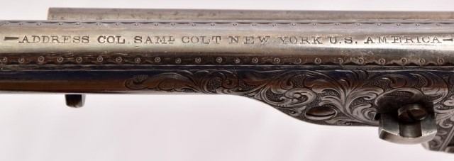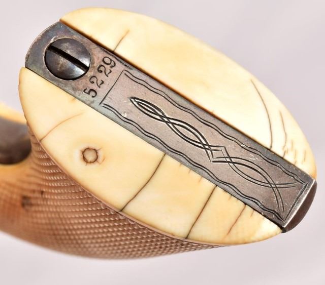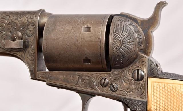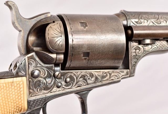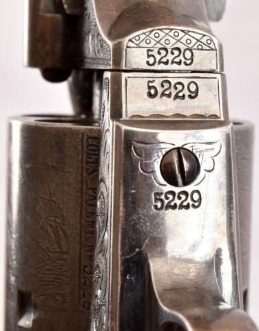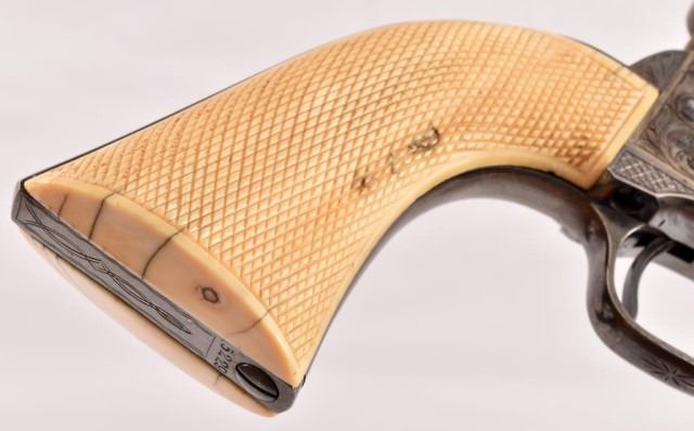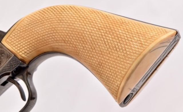 Period checkered ivory grips, period blue & case finish, as well as period engraving. Engraved Open Tops are extremely rare, with only 7 guns that were factory engraved and an unknown few that are New York engraved.