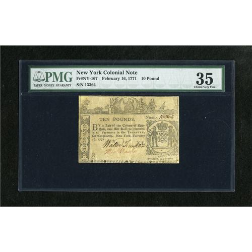 New York February 16, 1771 $10 PMG Choice Very