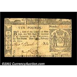 New York February 16, 1771 $10 Very Fine. Actually higher grade, but with some problems. The note ha