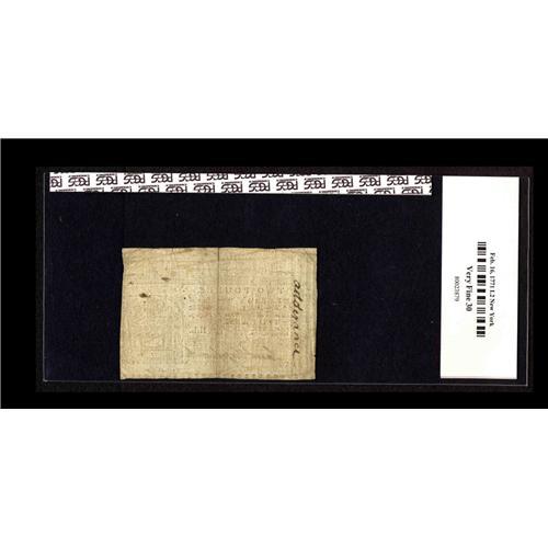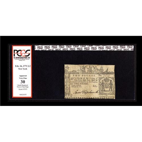 New York February 16, 1771 L2 PCGS Apparent Very Fine 3 New York February 16, 1771 L2 PCGS Apparent