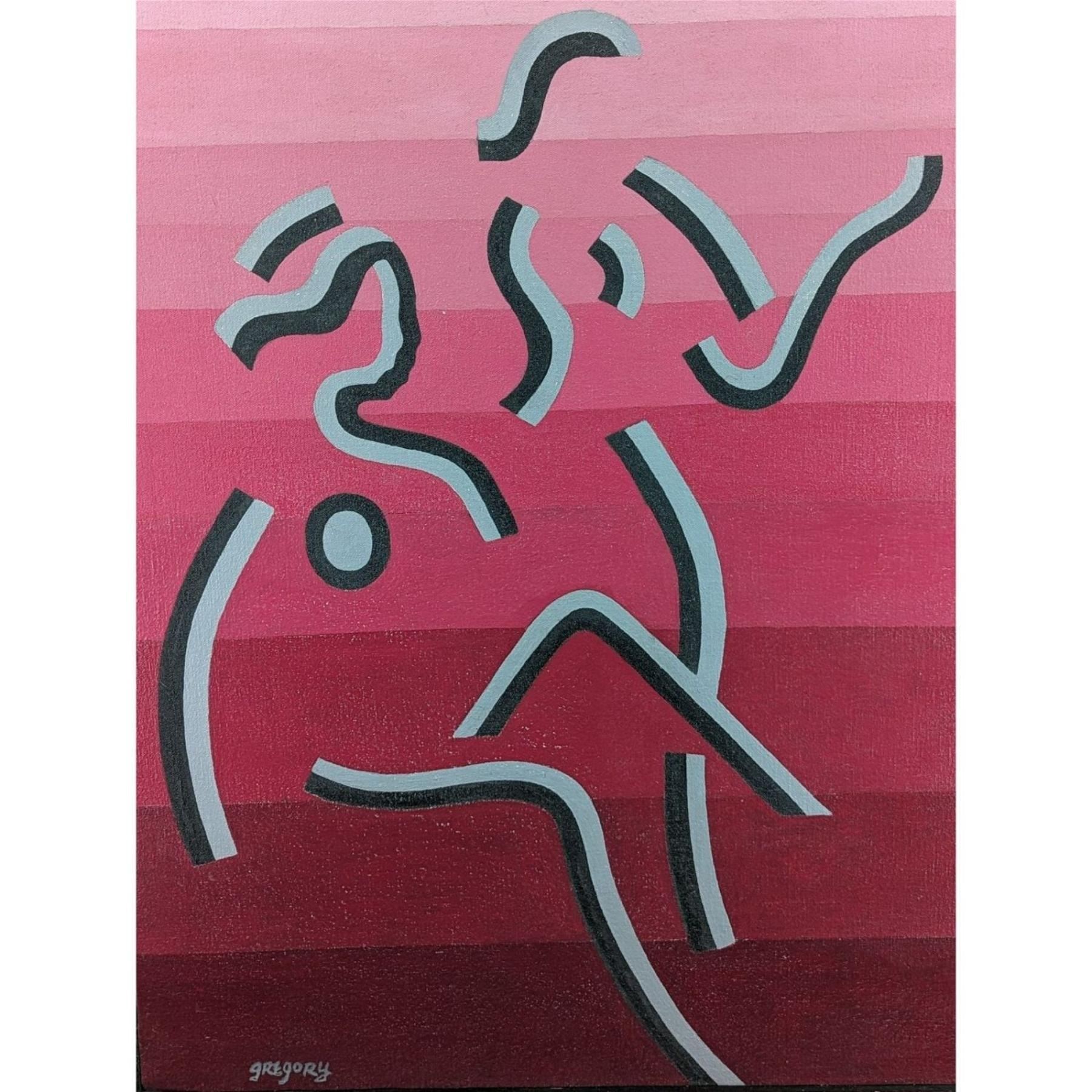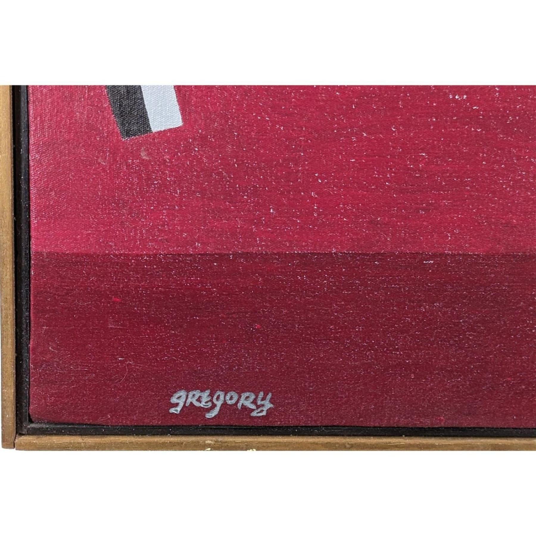 WWW.BRUCEGREGORY.COM. Prov: Directly From The Artist Estate || New York / Florida Artist Bruce Gregory 1917-2002 Abstract Painting Signed. TITLED: "Two Figures On Pink" Circa 1970. Frame 32 1/2" X 26 3/4", Sight 31 1/2" X 26 1/4". Bruce Gregory was a modern painter of nature, still life, and street scenes and was known for his mastery of color and his distinctive, bold and hard-shadowed painting style. A working artist and teacher throughout his life, he painted from his own observation and personal experience. Gregory traveled extensively during his lifetime. His artistic muse sprang from the people he met and the places he saw; his geography and natural surroundings were important to him. As such, his work is often distinguishable by the geographic area represented, even in abstraction. One can observe distinct periods in Gregoryâ& euro;™s painting as well as bold variations in subject and style based on the geographic locations where he worked actively, as can be seen in paintings completed in Paris, France; Ibiza, Spain; New York; Florida; Eastport, Maine; and Mexico. Early in his career, after World War II, and thanks to the G.I. Bill, Gregory lived and studied in Paris. The experience of painting with his teacher, noted French cubist painter, Fernand Léger (1881-1955), was engrained in him during this period. Léger was both a creative inspiration as well as an example, teaching him through the rigors and daily interaction of the competitive studio environment.Upon Gregoryâ& euro;™s return to the United States, Léger chose him to collaborate on two murals he was commissioned to design for the United Nations General Assembly. It was a fruitful collaboration and, clearly, the influence of Léger as both his mentor and teacher would continue to inform Gregoryâ& euro;™s work in the years that followed.In the United States, Gregory was an active member of the New York artistsâ& euro;™ community and spent summers at the arts colony in Woodstock, NY in upstate New York, where he was a summer resident for many years during the late 1930s through the 1960s. In Woodstock, he studied, painted and became friends with many other artists including Andrée Ruellan, John W. Taylor, Arnold Blanch, Doris Lee, Philip Guston, Albert Heckman, Dan Gottschalk, Julio De Diego, Lucile Blanch, Eduardo Chavez, Marion Greenwood, Yasuo Kuniyoshi, Agnes Hart, Sidney Laufman, Fletcher Martin, Anton Refregier, Harvey Fite, Robert Plate, and others.Gregory eventually settled in Sarasota, Florida, first as a winter resident starting in 1961, and where he was an instructor at the Ringling School of Art & Design (now Ringling College of Art & Design) for many years. Summers through the 1960s and 1970s would typically find Gregory with his wife, Millie, and their children in Woodstock, NY or in Eastport, ME, where Gregory also had a summer home, and traveling. After retiring from Ringling in 1984, Gregory continued to live in Florida, where he devoted himself to his artwork and was a well-recognized artist for the remainder of his life. He exhibited regularly and was widely known for his painting and papermaking.Gregoryâ& euro;™s work has been exhibited at the Butler Institute of American Art, Youngstown, OH; Society of the Four Arts, Palm Beach, FL; Museum of Modern Art (MoMA), New York, NY; Pennsylvania Academy of the Fine Arts, Philadelphia, PA; Foster Harmon Galleries of American Art, Naples & Sarasota, FL; Woodstock Artists Association and Museum, Woodstock, NY; Museum of Contemporary Art, Jacksonville, FL; Munson-Williams-Proctor Institute, Utica, NY; Associated American Artists (ACA), New York, NY; Albin Polasek Museum, Winter Park, FL; High Museum of Art, Atlanta, GA; Rollins Museum of Art, Winter Park, FL, and many others. Gregory's work is also included in the permanent collections of the Woodstock Artists Association & Museum in Woodstock, NY and the Huntington Art Museum in San Marino, California