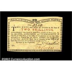 New York January 6, 1776 2s Very Choice New. A near-Gem example of this popular Water Works issue. The note is boldly signed in two different colors, perfectly clean and decently margined. The faces and backs of this issue were printed on two separate pieces of paper: the face on a bright, fine stock and the back on coarse, dark material. On this note, the back has been mounted upside-down, creating an Invert. Important notice: We expect to be auctioning lots at the rate of 200-250 per hour. Sometimes eBay Premier live bid software cannot keep up with that pace, so we strongly recommend that you place a realistic proxy bid now as insurance to avoid disappointment. Also please note that all Heritage/CAA lots purchased through eBay Premier carry a 20% Buyer's Premium. Please make sure you read the Terms and Conditions.