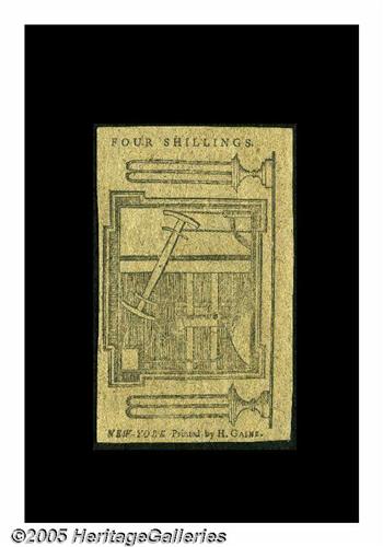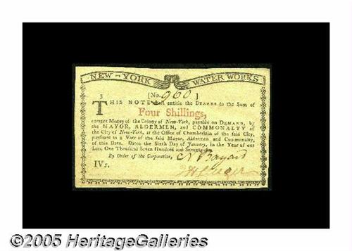 <B>New York January 6, 1776 (Water Works) 4s Gem New.</B></I> Excellent margins and deep original embossing highlight this Waterworks note. These are just about never seen this nice.