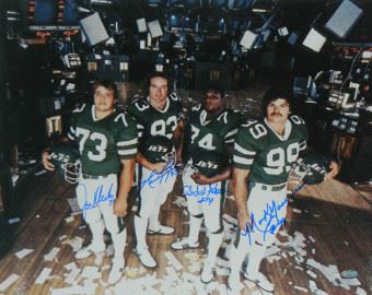 The members of the dominating defensive line of the New York Jets in the 1980s -Mark Gastineau, Joe Klecko, Marty Lyons and Abdul Salaam - were invited in November 1981 to ring the ceremonial opening bell at the New York Stock Exchange, which served as the inspiration for their nickname, the "New York Sack Exchange". In 1981, the Jets led the NFL with 66 sacks, and upon the Jets' first playoff berth since 1969, a fan at Shea Stadium held up a bedsheet on which he'd written "New York Sack Exchange". The rest is history. Mark Gastineau, Joe Klecko, Marty Lyons & Abdul Salaam personally have hand signed this New York Jets Sack Exchange 16x20 photo. Each autographed photo includes a Steiner Sports Hologram and Certificate of Authenticity.