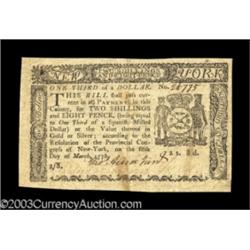 New York March 5, 1776 $1/3 Choice Extremely Fine.