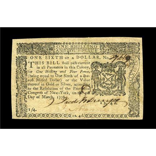 New York March 5, 1776 $1/6 Choice About New. A gorgeou New York March 5, 1776 $1/6 Choice About New