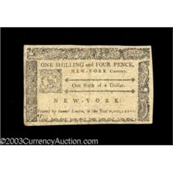 New York March 5, 1776 $1/6 Extremely Fine.