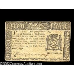 <TABLE cellSpacing=0 cellPadding=0 width="100%" bgColor=#000000 border=0><TBODY> <TR><TD width="100%"><TABLE cellSpacing=1 cellPadding=3 width="100%" border=0><TBODY><TR><TD width="100%" bgColor=#79735c><FONT face=arial color=#ffffff size=3><B>Description</B> </FONT></TD></TR><TR><TD width="100%" bgColor=#ffffff><FONT face=arial size=2><B>New York March 5, 1776 $1 Extremely Fine.</B></I> A very nice example, with a little light circulation but no problems. New York notes are very challenging to find in respectable circulated grades, as the paper, although it was quite thick, was weak and prone to damage. (350-up ) </FONT></TD></TR></TBODY></TABLE></TD></TR></TBODY></TABLE><BR><TABLE cellSpacing=0 cellPadding=0 width="100%" bgColor=#000000 border=0><TBODY><TR> Important notice: Heritage usually auctions material at the rate of 200-250 lots per hour. On some occasions eBay Live bid software or the Internet may not be able to keep up with the pace of the auction. We recommend placing a realistic absentee bid now as insurance to avoid disappointment. Occasionally the auctioneer may eliminate or reject an eBay Live bid, and the auctioneer may also reopen a lot after the close of the eBay live bidding (usually because we missed an audience bid), and may reject your bid even if it shows you as the winning bidder. By bidding via eBay Live, you agree that Heritage may award the lot to another bidder at its sole discretion under the circumstances described above or any other reasonable circumstances. Also please note that all Heritage lots purchased through eBay Live carry a 20% Buyer's Premium. Please make sure you read the Terms and Conditions before you bid.</TR></TBODY></TABLE>