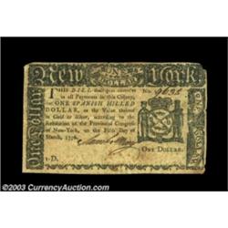 <TABLE cellSpacing=0 cellPadding=0 width="100%" bgColor=#000000 border=0><TBODY> <TR><TD width="100%"><TABLE cellSpacing=1 cellPadding=3 width="100%" border=0><TBODY><TR><TD width="100%" bgColor=#79735c><FONT face=arial color=#ffffff size=3><B>Description</B> </FONT></TD></TR><TR><TD width="100%" bgColor=#ffffff><FONT face=arial size=2><B>New York March 5, 1776 $1 Very Fine.</B></I> Circulated and with a few minor edge problems, but well printed and attractive for the grade. New York is one of the more difficult Colonies from which to obtain decent good-looking examples. (200-up ) </FONT></TD></TR></TBODY></TABLE></TD></TR></TBODY></TABLE><BR><TABLE cellSpacing=0 cellPadding=0 width="100%" bgColor=#000000 border=0><TBODY><TR> Important notice: Heritage usually auctions material at the rate of 200-250 lots per hour. On some occasions eBay Live bid software or the Internet may not be able to keep up with the pace of the auction. We recommend placing a realistic absentee bid now as insurance to avoid disappointment. Occasionally the auctioneer may eliminate or reject an eBay Live bid, and the auctioneer may also reopen a lot after the close of the eBay live bidding (usually because we missed an audience bid), and may reject your bid even if it shows you as the winning bidder. By bidding via eBay Live, you agree that Heritage may award the lot to another bidder at its sole discretion under the circumstances described above or any other reasonable circumstances. Also please note that all Heritage lots purchased through eBay Live carry a 20% Buyer's Premium. Please make sure you read the Terms and Conditions before you bid.</TR></TBODY></TABLE>