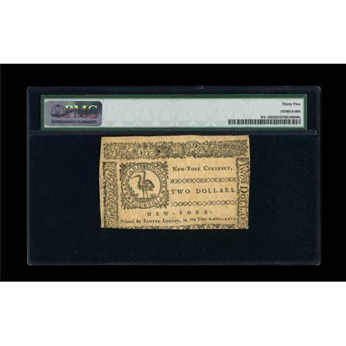 <B>New York March 5, 1776 $2 PMG Choice Very Fine 35.</B></I> This note is much scarcer than the price guides indicate as the printing consisted of only 2350 notes. The signature of Cornelius Ray is still bold.<BR><BR><b>Shipping:</b> Coins & Currency (<a target="_blank" href="http://www.heritageauctions.com/common/shipping.php">view shipping information</a>)