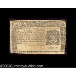 <TABLE cellSpacing=0 cellPadding=0 width="100%" bgColor=#000000 border=0><TBODY> <TR><TD width="100%"><TABLE cellSpacing=1 cellPadding=3 width="100%" border=0><TBODY><TR><TD width="100%" bgColor=#79735c><FONT face=arial color=#ffffff size=3><B>Description</B> </FONT></TD></TR><TR><TD width="100%" bgColor=#ffffff><FONT face=arial size=2><B>New York March 5, 1776 $3 Very Fine.</B></I> There is a repaired hole toward the top that is barely noticeable. The Ten Commandments vignette on the back is really clear. (250-up ) </FONT></TD></TR></TBODY></TABLE></TD></TR></TBODY></TABLE><BR><TABLE cellSpacing=0 cellPadding=0 width="100%" bgColor=#000000 border=0><TBODY><TR> Important notice: Heritage usually auctions material at the rate of 200-250 lots per hour. On some occasions eBay Live bid software or the Internet may not be able to keep up with the pace of the auction. We recommend placing a realistic absentee bid now as insurance to avoid disappointment. Occasionally the auctioneer may eliminate or reject an eBay Live bid, and the auctioneer may also reopen a lot after the close of the eBay live bidding (usually because we missed an audience bid), and may reject your bid even if it shows you as the winning bidder. By bidding via eBay Live, you agree that Heritage may award the lot to another bidder at its sole discretion under the circumstances described above or any other reasonable circumstances. Also please note that all Heritage lots purchased through eBay Live carry a 20% Buyer's Premium. Please make sure you read the Terms and Conditions before you bid.</TR></TBODY></TABLE>