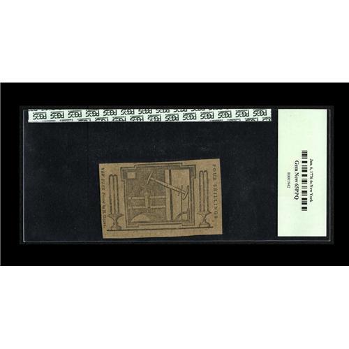 <B>New York March 5 ,1776 (Water Works) 4s PCGS Gem New 65PPQ.</B></I> A very broadly margined example from this final Water Works issue which has bold signatures and embossing that is easily seen through the holder. The back is slightly shifted but does not touch at any edge.<BR><I>From The Troy Wiseman Collection</B></I>
