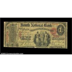 New York, NY - $1 Original Fr. 380 The Fourth NB Ch. # 290A well circulated but essentially problem free Very Good ace. The bottom margin is trimmed into the design. Important notice: We expect to be auctioning lots at the rate of 200-250 per hour. Sometimes eBay Premier live bid software cannot keep up with that pace, so we strongly recommend that you place a realistic proxy bid now as insurance to avoid disappointment. Also please note that all Heritage/CAA lots purchased through eBay Premier carry a 20% Buyer's Premium. Please make sure you read the Terms and Conditions.