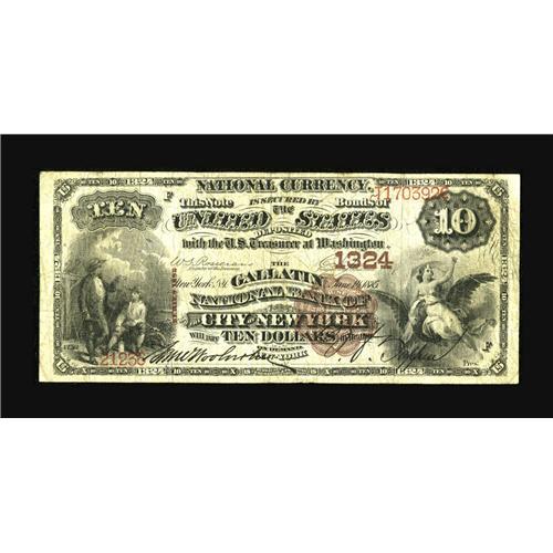 <B>New York, NY</B></I> - $10 1882 Brown Back Fr. 482 <B>The Gallatin NB</B></I> Ch. # 1324<BR>This well centered New York City $10 Brown Back is an ideal representative of its type in a middle grade. <B>Fine.</B></I><BR><BR><b>Shipping:</b> Coin/Currency (<a target="_blank" href="http://www.heritageauctions.com/common/shipping.php">view shipping information</a>)