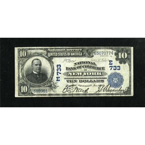 <B>New York, NY</B></I> - $10 1902 Date Back Fr. 616 <B>NB of Commerce</B></I> Ch. # (E)733<BR> Attractive and well signed. <B>Very Fine.</B></I><BR><BR><b>Shipping:</b> Coins & Currency (<a target="_blank" href="http://www.heritageauctions.com/common/shipping.php">view shipping information</a>)