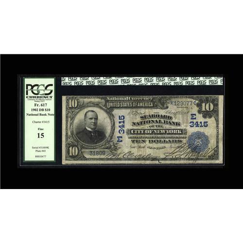 <B>New York, NY</B></I> - $10 1902 Date Back Fr. 617 <B>The Seaboard NB </B></I> Ch. #(E)3415<BR>Darkly stamped signatures remain fully legible on this distinctively titled New York City Date Back. <B>PCGS Fine 15.</B></I>