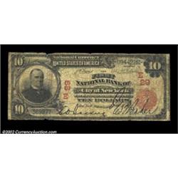 New York, NY - $10 1902 Red Seal Fr. 613 The First NB Ch. # (E)29Soiled and well circulated, but the color on this Red Seal is surprisingly strong for the grade. Very Good. Important notice: We expect to be auctioning lots at the rate of 200-250 per hour. Sometimes eBay Premier live bid software cannot keep up with that pace, so we strongly recommend that you place a realistic proxy bid now as insurance to avoid disappointment. Also please note that all Heritage/CAA lots purchased through eBay Premier carry a 20% Buyer's Premium. Please make sure you read the Terms and Conditions.
