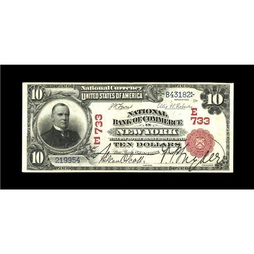 <B>New York, NY</B></I> - $10 1902 Red Seal Fr. 613 <B>The NB of Commerce</B></I> Ch. # (E)733<BR>The color and paper are eye appealing for a note that is a touch flat. <B>Very Fine.</B></I><BR><BR><b>Shipping:</b> Coin/Currency (<a target="_blank" href="http://www.heritageauctions.com/common/shipping.php">view shipping information</a>)